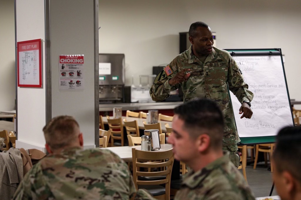 21st TSC Commanding General Maj. Gen. James Smith and Command Sgt. Maj. Kofi Primus hosted the FY23 1st Quarter Commander’s Breakfast at the Rhine Ordnance Barracks DFAC on December 6.