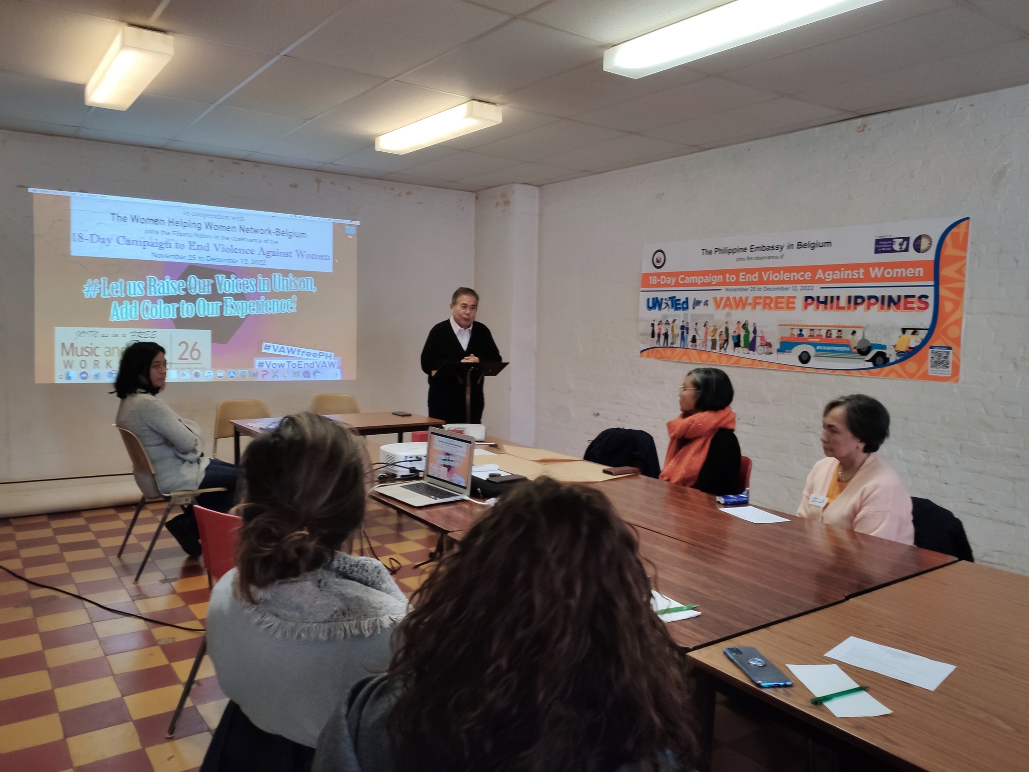 Liza Jane Estalilla, Gender and Development Focal Point Officer of the Embassy, briefed the participants about the functions of the WHW Network – Belgium, a group of Belgian and Filipino volunteers that serves as the Embassy’s partner in reaching out to the community especially to Filipinos suffering from domestic violence and other forms of crisis.